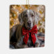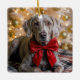 Adorno De Cerámica Christmas Weimaraner Dog With Red Bow