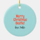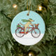 Perro de dibujos animados lindo vestido con un gorra de invierno de rayas verdes y una bufanda larga y pedaleando una bicicleta roja. La ardilla roja alegre está en la canasta de bicicletas. Estos dos están en camino de entregar regalos de Navidad a sus amigos. Un dulce regalo y un adorable adorno para mostrar en el árbol de Navidad por años. Visite el Doodle World de Jenn para ver adornos más encantadores, regalos de festividad caprichosos y la decoración de casa de los amantes de los animales. ©Jenn Inashvili