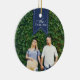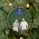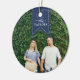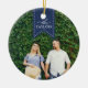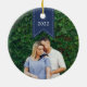 Personalice este elegante adorno de cerámica con una foto a cada lado para conmemorar un año especial. Personalizar la parte delantera con el nombre de su familia en blanco en un cartel azul marino, y agrega el año a la parte posterior.