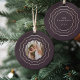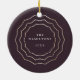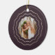Personalice este elegante adorno de cerámica con una foto en la parte delantera y una leyenda en la parte trasera, rodeada por un triple borde geométrico en falso Relieve metalizado de oro sobre un rico fondo de ciruela de berenjenas. Este diseño de moda es perfecto para conmemorar un año especial o un "primero" especial.