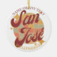 Diseño Retro Vintage de Ciudad de San José California EE. UU. con una bola de discoteca en tonos marrón claro, rosa y azul claro. Este hermoso adorno es un regalo perfecto para residentes o turistas de la ciudad de San José.