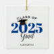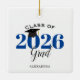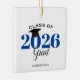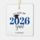 Este adorno navideño de graduación es un regalo perfecto para la clase de graduados de 2022. El diseño presenta el año en azul oscuro con un gorra de graduación de mortarboard. Personaliza con el nombre del graduado.