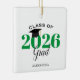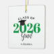 Este adorno navideño de graduación es un regalo perfecto para la clase de graduados de 2022. El diseño presenta el año en verde con un gorra de graduación de mortarboard. Personaliza con el nombre del graduado.