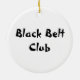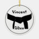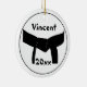 Personalizar el único ornamento redondo del club de artes marciales negras con el nombre de su artista marcial y el año en curso. Cree un regalo de cinturón negro personalizado para conmemorar un examen o prueba de promoción del cinturón negro. Adecuado para todas las artes marciales incluyendo karate, taekwondo, kung fu, ju jitsu y judo. Esta de una especie de adorno deportivo de artes marciales personalizadas presenta una fotografía digitalmente realzada de un cinturón negro de artes marciales en el frente con las palabras Club del Cinturón Negro en la parte posterior.