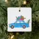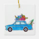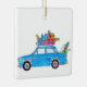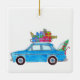 Adorno De Cerámica Coche azul con Navidades y acuarela