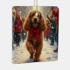 A joyful Christmas parade scene featuring a Cocker Spaniel in festive attire. This cheerful painting captures the energy and excitement of holiday celebrations, perfect for seasonal home décor.