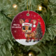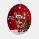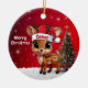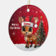 Comet! Celebrate the holiday season with this festive round ceramic red ornament featuring an endearing woodland forest animal cartoon graphic of a cute baby reindeer wearing a Santa hat, and Merry Christmas written in white. Perfect deer with antlers for decorating your tree or as a thoughtful gift, this whimsical doe decor makes a cherished keepsake for years to come. Customize by changing the text, the font, the font color, or remove the text. You can even transfer this design onto other products. Enjoy this design your way! Check out ForestBabies Xmas Deer Collection for matching decorations. 🎄🦌