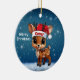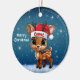 Comet! Whimsical reindeer baby woodland animal. Blue holiday season round ceramic ornament featuring a playful fawn forest cartoon doe character graphic wearing a cute Santa hat, and Merry Christmas written in white. Cute wildlife deer with antlers for decorating your Xmas tree or as a thoughtful gift or present marker, this decor makes a cherished keepsake for years to come. Customize by changing the text, the font, the font color, or remove the text. You can even transfer this festive design onto other products. Enjoy this design your way! 🎄🦌