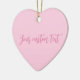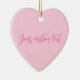 Concienciación sobre el cáncer de mama mes luz rosa sólido color liso moderno elegante chica lindo personalizado personalizado corazón de ornamento cerámico. Personalizable completo del texto del guión rosado sobre el fondo de color liso y sólido rosa claro. Puedes escribir una nota personal, una frase o cita favorita, un poema inspirador, etc Genial como regalo, favor o recuerdo de Navidades. Durante el Mes de Concienciación sobre el Cáncer de Mama en octubre y a lo largo del año, la gente usa cintas rosas para honrar a los sobrevivientes, recordar a los que perdieron por la enfermedad y apoyar el progreso que estamos haciendo juntos para derrotar el cáncer de mama.