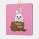 Adorno De Cerámica Conejo blanco lindo en huevo de chocolate Feliz Pa