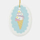 Ornamento lindo del óvalo del cono de helado del remolino. El ornamento adaptable tiene un cono de helado en colores pastel lindo del remolino con los corazones, estrellas, arco del rosa, en una forma oval horneada a la crema y con pan rallado azul clara que tenga mini lunares blancos.