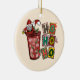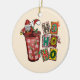 Trae alegría festiva a la temporada con este adorable ornamento con las palabras "Ho Ho Ho" y un lindo hogar escandinavo de Papá Noel sentado encima de una taza de Navidades. Perfecto para extender la alegría de las vacaciones con un toque caprichoso y acogedor. Una deliciosa elección para los amantes del gnomo, los aficionados de Santa Lucía y todo aquel que disfrute de diseños de Navidades juguetones. Ideal como una idea de regalo de vacaciones para la familia, amigos o compañeros de trabajo.