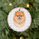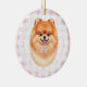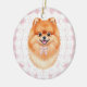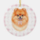 Adorno De Cerámica Coquette Brown Pomeranian Dog Pink Gingham Bows