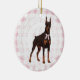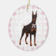 Adorno De Cerámica Coquette Doberman Pinscher Pink Gingham Bows