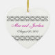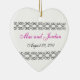 Este ornamento del corazón se puede personalizar por usted por ambas partes para crear un recuerdo especial como conmemoración de un nacimiento, de la adopción, del bautismo, del cumpleaños, del compromiso, del boda, del aniversario o de cualquier ocasión especial. Usted puede cambiar el texto añadiendo diversos nombres, o las ocasiones, o las fechas. Esto hace un recuerdo especial de cualquier ocasión o celebración importante. Si usted cambia el estilo del ornamento, usted puede tener que ajustar las barras decorativas.