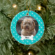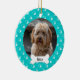 Personalice este diseño festivo de adorno adornado con una foto de su perro cachorro con su nombre en la placa monográfica de hueso de perro. Un gran regalo para los amantes del perro, para celebrar la primera Navidad de un cachorro o para apreciar la memoria de un querido perro de la familia.