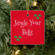 Divertido adorno navideño. Rojo con campanas verdes. ¡Jingle todo el camino!