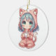 Adorno De Cerámica Cozy Kawaii Anime Girl with Cat Hoodie – Hot Drink