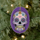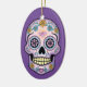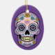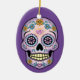 El cráneo de azúcar morado con diamantes, flores y corazón es un diseño de cráneo colorido perfecto para el Día de los Muertos.