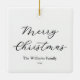 Crea tu propio collage de fotos personalizado en el ornamento navideño con 4 de tus recuerdos de fotos favoritos. Cara inversa que presenta Feliz Navidad o texto personalizado en caligrafía minimalista junto con nombre y año.