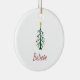 Navidades modernos creen que la postal de vacaciones con un diseño de árbol verde a mano. Con letras de tipografía de personalizable añades tu propio texto. ¡Una adición festiva a tu árbol de vacaciones!