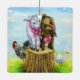 En la parte superior de un tronco de árbol se exhiben dos adorables cabras bebé flanqueadas por un pato y un gallo. Inspirado por los adorables animales de granero de mi primo. Por Amanda Diehl, Diseños Paxdomino