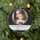 Celebra un hito de 40 años con este elegante adorno de conservas de fotos con motivos en polka blanco y negro. Pequeños puntos blancos en negro, con forma de círculo de coordinación para enmarcar tu fotografía con gusto. El texto con líneas de diseño y el guión de desplazamiento elegante dicen Forty & Fabasty. Añade su nombre y fecha de nacimiento al revés si lo deseas.