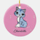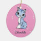 Adorno De Cerámica Cuidar gato azul en nombre personalizado rosa