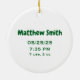 Personalized baby's first Christmas ornament for boy. Teddy bear on plaid background on front. Text with name and birth stats on back.