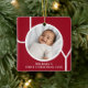 Adorno De Cerámica Custom Baby's First Christmas Photo Red