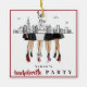 Celebrate the bride-to-be with this chic NYC-inspired bachelorette ornament featuring a sleek line-art New York City skyline above four fashionable ladies—three in little black dresses and the bride standing out in white.