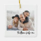 Black Photo Collage Christmas Ornament. This custom ornament features a sleek black design with a photo on each side, giving you space to showcase two special memories. Under each photo, you can add the family name, date, or any custom line in a cute handwritten script calligraphy font for a sweet personal touch. The simple black background keeps it modern and timeless, making it a meaningful gift for family, friends, or yourself during the holiday season.