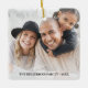White Gradient Photo Collage Christmas Ornament. This ornament features a full-image layout on both sides, giving you space to showcase two of your favorite photos. A soft white gradient sits at the bottom of each side, adding just enough contrast to help your text stand out clearly while keeping the overall look clean and subtle. Centered along the bottom, your custom wording appears in a simple black serif font for a classic touch. A thoughtful and modern keepsake for family, friends, or yourself during the holiday season.