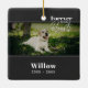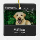 This custom pet memorial in elegant dark grey makes a touching tribute to a best friend. Commemorate a life filled with the love of a precious dog or cat with this cute ornament. Featuring a sweet labrador and the well known phrase, "Forever in our hearts" on both sides. Customize with your dog's or cat's photos, their names and their years living.