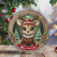 Custom Wooden Framed Deer Holiday Decoration. Rustic Vibe Personal Name Gift Tag. Whimsical Winter Wonderland Woodland Wildlife Xmas Deer with Antlers Character Ceramic Ornament! Featuring customizable white text saying "Merry Christmas" on a vibrant red ribbon – easily swap it out for a loved one's name to make a truly personalized Tree decor with charming accents of pine cones and evergreen branches for that cozy look. At the center is a cute, reindeer in cartoon graphic style, dressed in a fur collared coat and hat, evoking the spirit of an animal with a festive twist. The background showcases an enchanting snow landscape complete with a snowy trees, capturing the joy of the season. This two-sided, personalizable pine wood artwork ensures seeing the Xmas adornment from every angle – illustration appears on both front and back, so it always looks complete no matter how it spins while hanging. Perfect for gifting or decorating, and you can transfer this unique design to a variety of other products, from mugs to cards and more! Personalize your pinecone embellishment and bring home this delightful keepsake today – visit Zazzle to customize and order now! 🦌🎄
