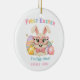 Celebrate a precious milestone with this adorable "Baby's First Easter" personalized ornament! Featuring a charming bunny wearing heart shaped glasses, surrounded by colorful Easter eggs, and the playful phrase "I'm Egg-cited!". Customize it with the baby's name and year to create a truly unique and cherished keepsake. Perfect for new parents, grandparents, or as a delightful addition to any Easter celebration.