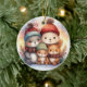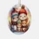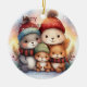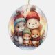 Add a heartwarming touch to your holiday tree with this personalized ceramic circle ornament featuring an adorable woodland family bundled in cozy winter hats and scarves. The soft frosty background and your family name make it a charming keepsake to treasure year after year.