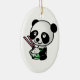 Adorno De Cerámica Cute Panda comiendo arroz del bol con palillos