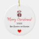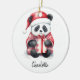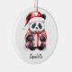Cute Panda Santa Merry Ornamento de Navidad. Los colores negro, blanco y rojo de estilo kawaii llevan sombrero de Santa y un regalo. Texto personalizado.