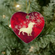Este único adorno de vacaciones hará un maravilloso regalo de mantenimiento para cualquiera que ame un Doxie! Cuenta con una silueta dorada de la imagen de Dachshund frente a un rociado de copos de nieve dorados ornamentados. La imagen se coloca sobre un fondo rojo Navidad profundo degradado. La parte posterior del ornamento tiene el mismo fondo rojo y copos de nieve dorados, y un campo de texto para personalizar. ¡bonito!