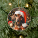 Adorno De Cerámica Dachshund rojo lindo con Santa Hat