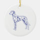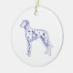 Klassisches Design in Blau-Weiß. Blaue Linienzeichnung eines Dalmatiners auf weißem Untergrund.