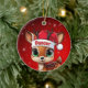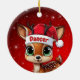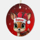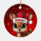 Dancer! Celebrate the holiday season with this festive round ceramic red ornament featuring an endearing woodland forest animal cartoon graphic of a cute baby reindeer wearing a Santa hat. Perfect deer with antlers for decorating your tree or as a thoughtful gift, this whimsical doe decor makes a cherished keepsake for years to come. Customize by changing the text, the font, the font color, or remove the text. You can even transfer this design onto other products. Enjoy this design your way! Check out ForestBabies Xmas Deer Collection for matching decorations. 🎄🦌