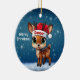 Dancer! Celebrate the holiday season with this festive round ceramic red ornament featuring an endearing woodland forest animal cartoon graphic of a cute baby reindeer wearing a Santa hat, and Merry Christmas written in white. Perfect deer with antlers for decorating your tree or as a thoughtful gift, this whimsical doe decor makes a cherished keepsake for years to come. Customize by changing the text, the font, the font color, or remove the text. You can even transfer this design onto other products. Enjoy this design your way! Check out ForestBabies Xmas Deer Collection for matching decorations. 🎄🦌