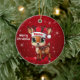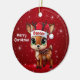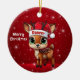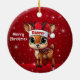 Dancer! Celebrate the holiday season with this festive round ceramic red ornament featuring an endearing woodland forest animal cartoon graphic of a cute baby reindeer wearing a Santa hat, and Merry Christmas written in white. Perfect deer with antlers for decorating your tree or as a thoughtful gift, this whimsical doe decor makes a cherished keepsake for years to come. Customize by changing the text, the font, the font color, or remove the text. You can even transfer this design onto other products. Enjoy this design your way! Check out ForestBabies Xmas Deer Collection for matching decorations. 🎄🦌