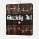 Navidades daneses saludando - Glædelig Jul adorno holday de estilo rústico, con una bandera danesa bauble, luces de Navidad y diseño de nieve en un fondo rústico.