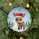 Dasher! Celebrate the holiday season with this festive round ceramic red ornament featuring an endearing woodland forest animal cartoon graphic of a cute baby reindeer wearing a Santa hat, and Merry Christmas written in white. Perfect deer with antlers for decorating your tree or as a thoughtful gift, this whimsical doe decor makes a cherished keepsake for years to come. Customize by changing the text, the font, the font color, or remove the text. You can even transfer this design onto other products. Enjoy this design your way! Check out ForestBabies Xmas Deer Collection for matching decorations. 🎄🦌