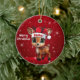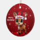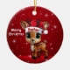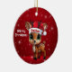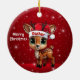 Dasher! Celebrate the holiday season with this festive round ceramic red ornament featuring an endearing woodland forest animal cartoon graphic of a cute baby reindeer wearing a Santa hat, and Merry Christmas written in white. Perfect deer with antlers for decorating your tree or as a thoughtful gift, this whimsical doe decor makes a cherished keepsake for years to come. Customize by changing the text, the font, the font color, or remove the text. You can even transfer this design onto other products. Enjoy this design your way! Check out ForestBabies Xmas Deer Collection for matching decorations. 🎄🦌