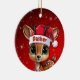 Dasher! Celebrate the holiday season with this festive round ceramic red ornament featuring an endearing woodland forest animal cartoon graphic of a cute baby reindeer wearing a Santa hat. Perfect deer with antlers for decorating your tree or as a thoughtful gift, this whimsical doe decor makes a cherished keepsake for years to come. Customize by changing the text, the font, the font color, or remove the text. You can even transfer this design onto other products. Enjoy this design your way! Check out ForestBabies Xmas Deer Collection for matching decorations. 🎄🦌