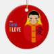 " De China con amor" clama contra esta celebración de la adopción internacional de China. Un pequeño muchacho chino lindo adorna este ornamento encantador que acentúa el lugar especial que el nuevo niño sostendrá en los corazones de su familia del forever. El este encantar y ornamento adaptable del recuerdo de la adopción dice "amor" en caracteres de kanji chinos en el frente y "hola" (Ni Hao) en la parte posterior con un nacimiento del poema de la adopción y de su hijo y la fecha de la adopción.